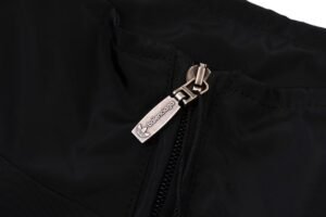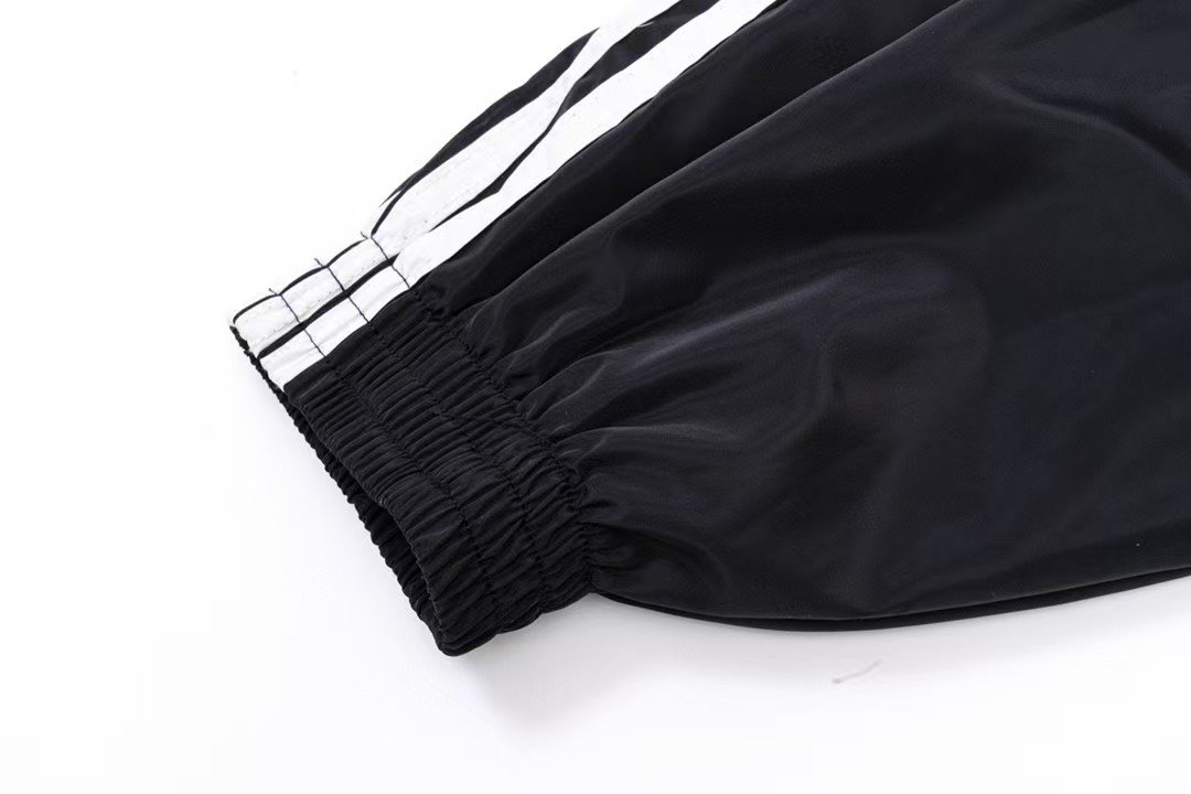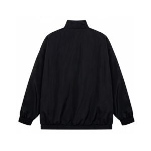 • Design: Oversized black zip-up jacket with a stand collar, elasticated cuffs/hem, and lightweight fabric. It features Adidas’ iconic white 3-stripe detail on the sleeves.