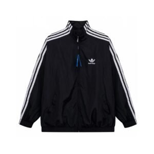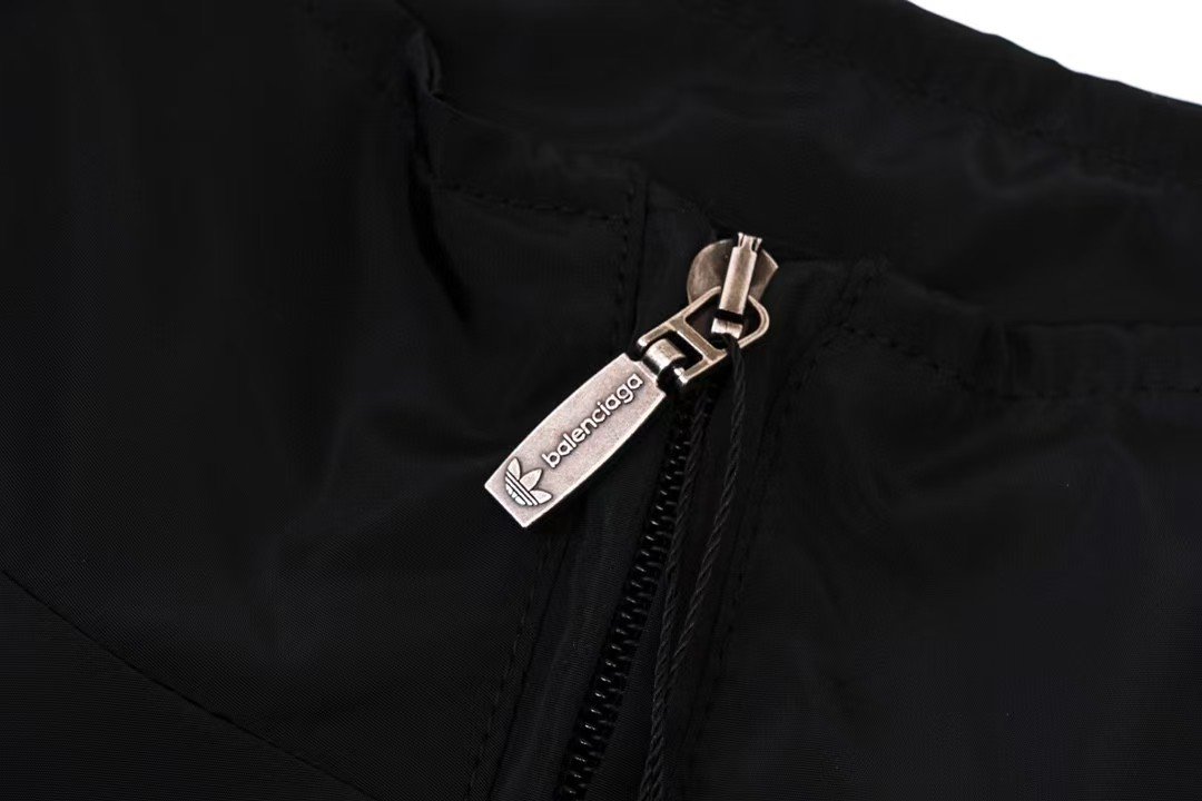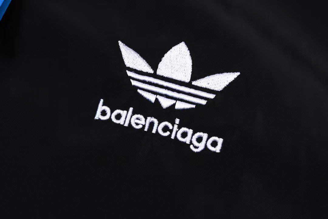 • Branding: Combines Adidas’ trefoil logo (printed on the chest) with “balenciaga” lettering, plus a blue Balenciaga zip pull.
