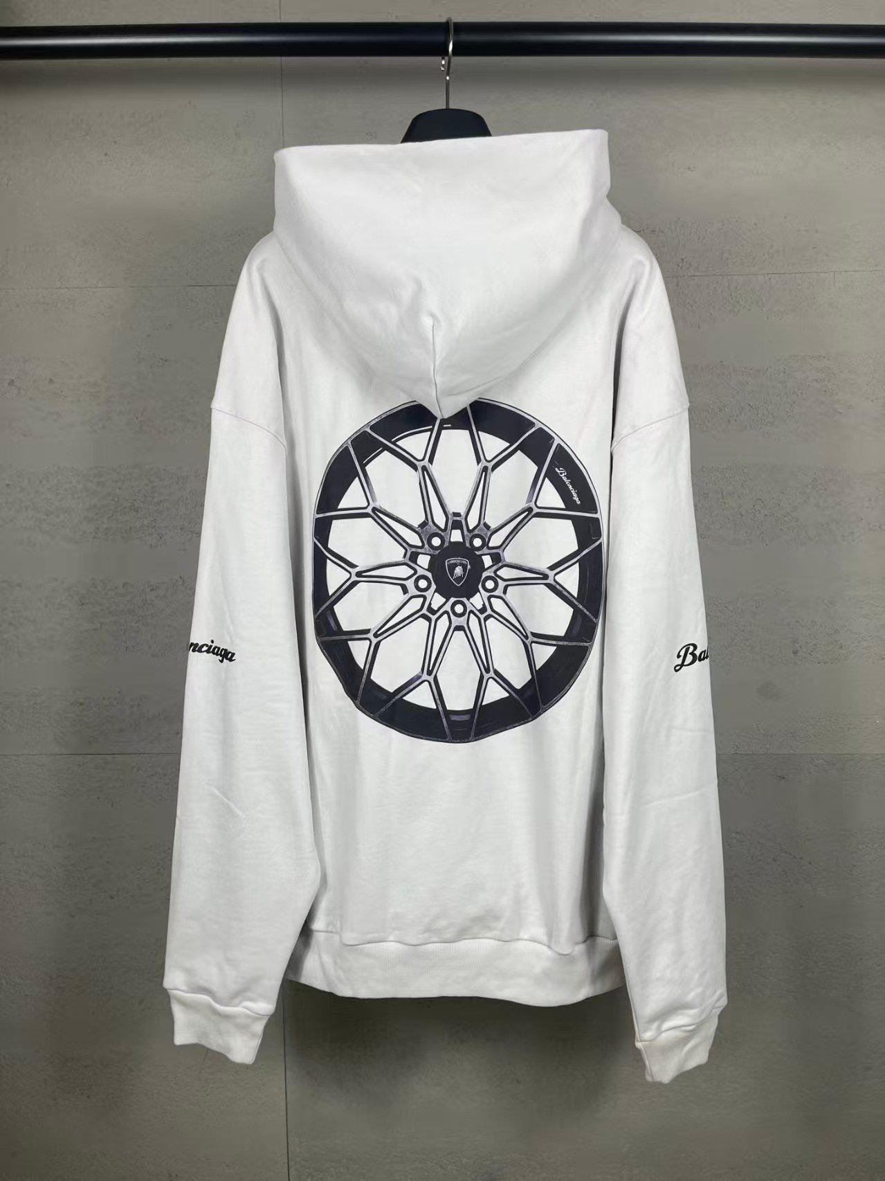 This is the BALENCIAGA x Lamborghini collaborative oversized hoodie: