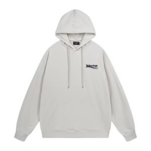 Balenciaga's classic "Coke" embroidered hoodie Design: Oversized off-white hoodie with a drawstring hood and kangaroo pocket, crafted from official custom-woven/dyed cotton French terry fabric.Branding: Features the iconic “Balenciaga” lettering (Coke-style typography) with wave accents, embroidered on the chest.Style: A timeless, minimalist luxury casual piece perfect for everyday streetwear outfits Contact by email:qiling0251014@gmali.com
