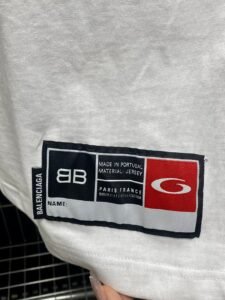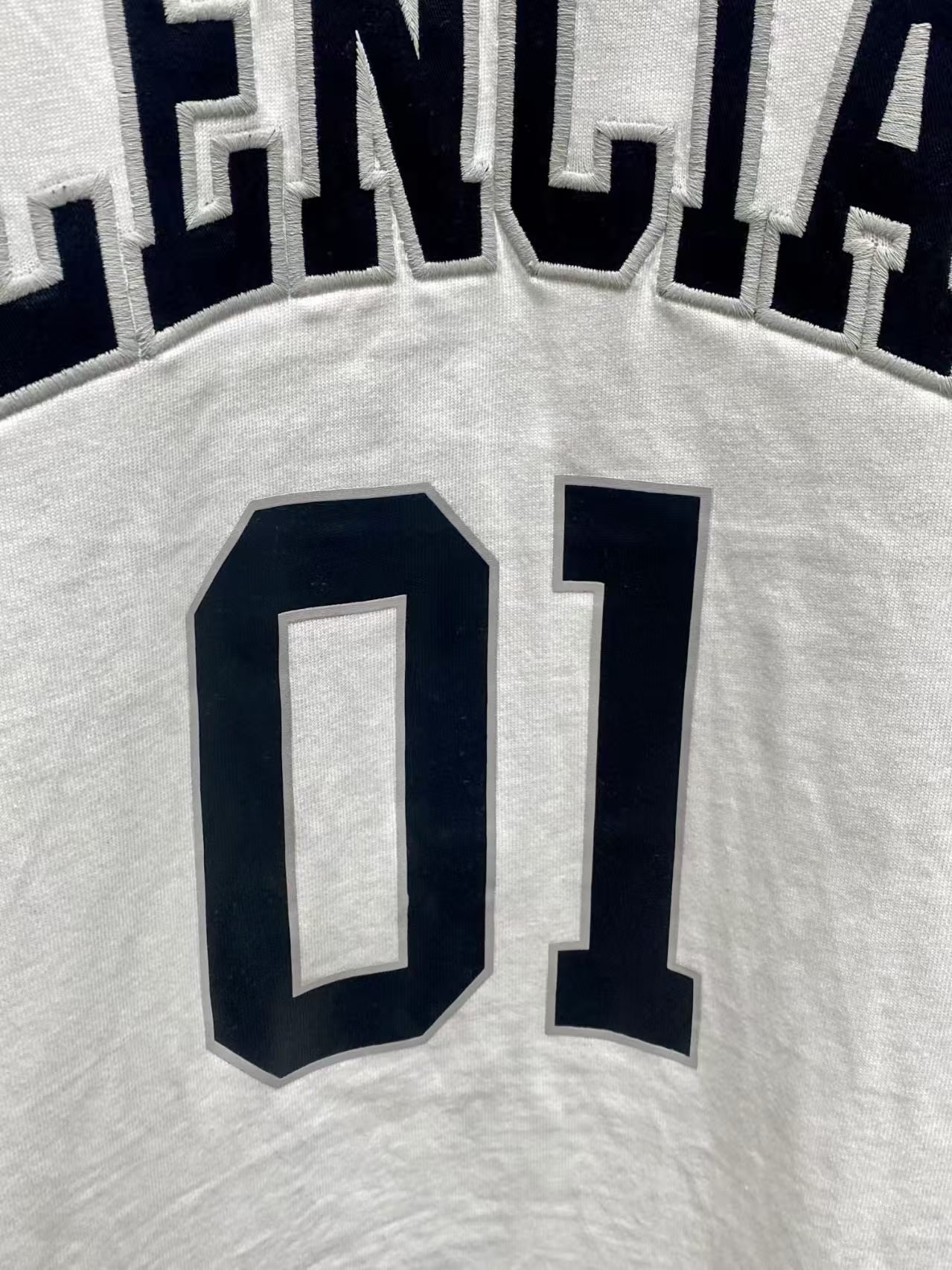 - Branding: Features bold “BALENCIAGA” lettering (arch-shaped) and a “01” number print (basketball-jersey style), plus a small “BB” patch on the hem.