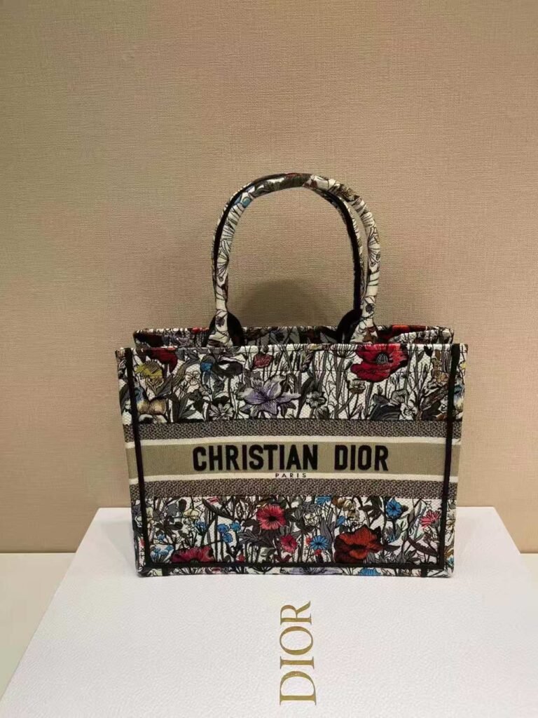 DIOR Lady D-Lite bag red This is the women’s medium-sized DIOR Lady D-Lite bag: Made of canvas with embroidered Toile de Jouy Soleil patterns (floral and butterfly motifs in pink/red tones). Features a “CHRISTIAN DIOR PARIS” stripe, matching patterned top handles, and a detachable wide strap (supports shoulder/crossbody/handheld carry). A decorative, versatile Lady Dior style suitable for […]