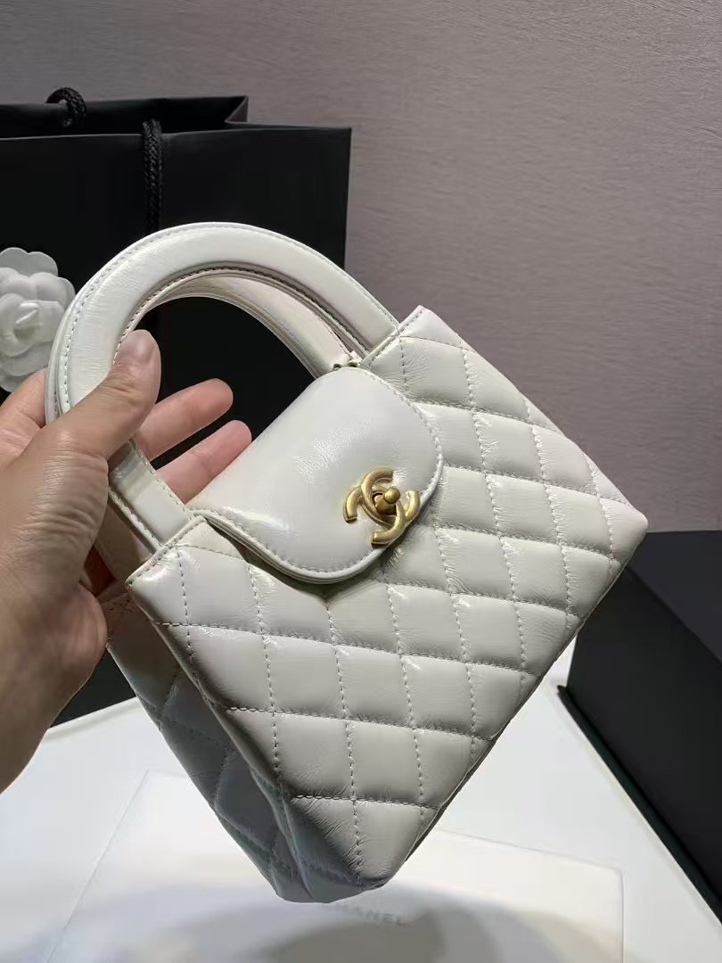 This is a CHANEL mini crossbody bag in white lambskin, featuring iconic quilted diamond patterns and a gold-tone interlocking CC clasp. It comes with a chain strap (typically leather-threaded) for versatile shoulder/crossbody styling, embodying the brand’s elegant, compact luxury.
