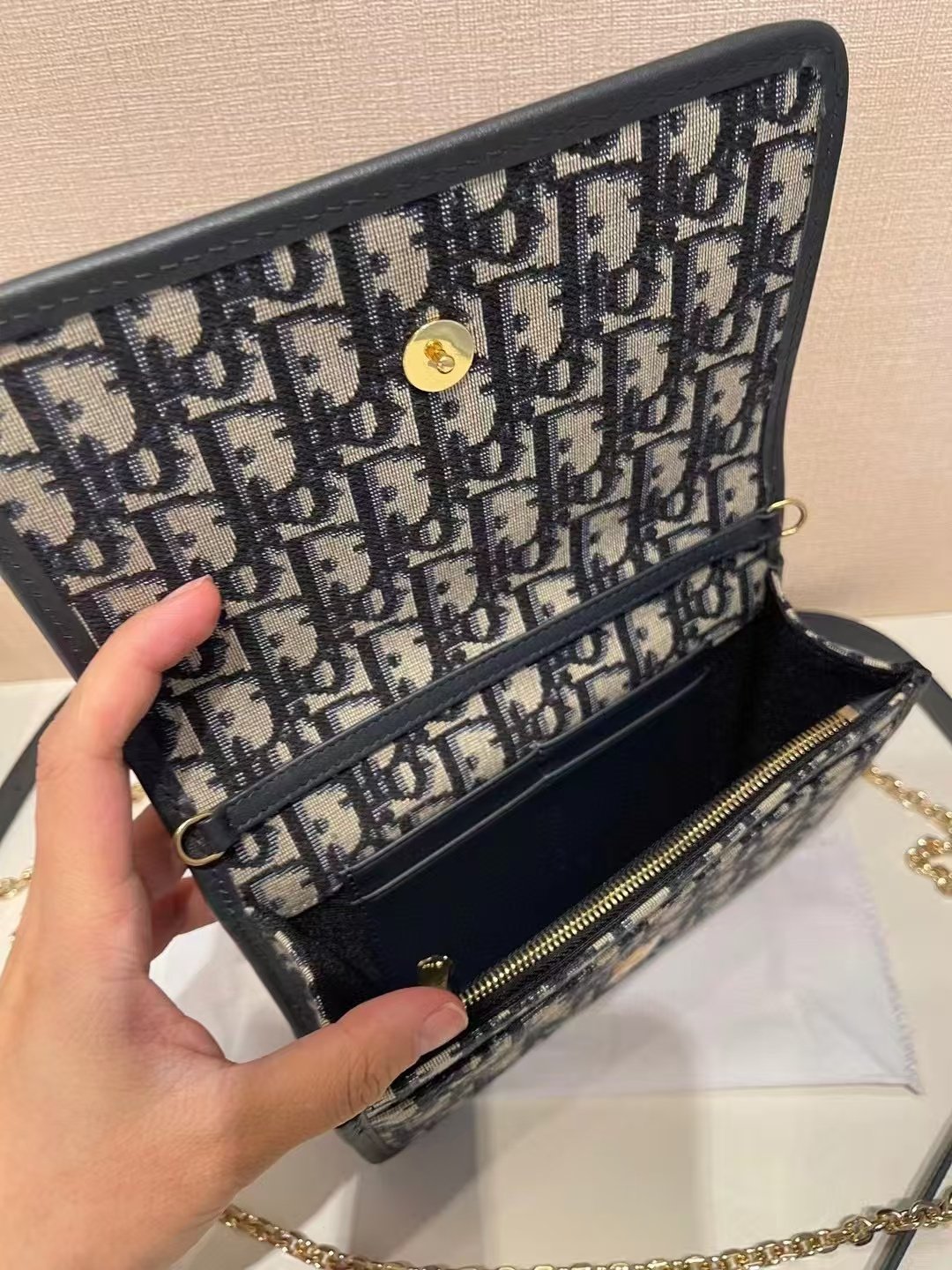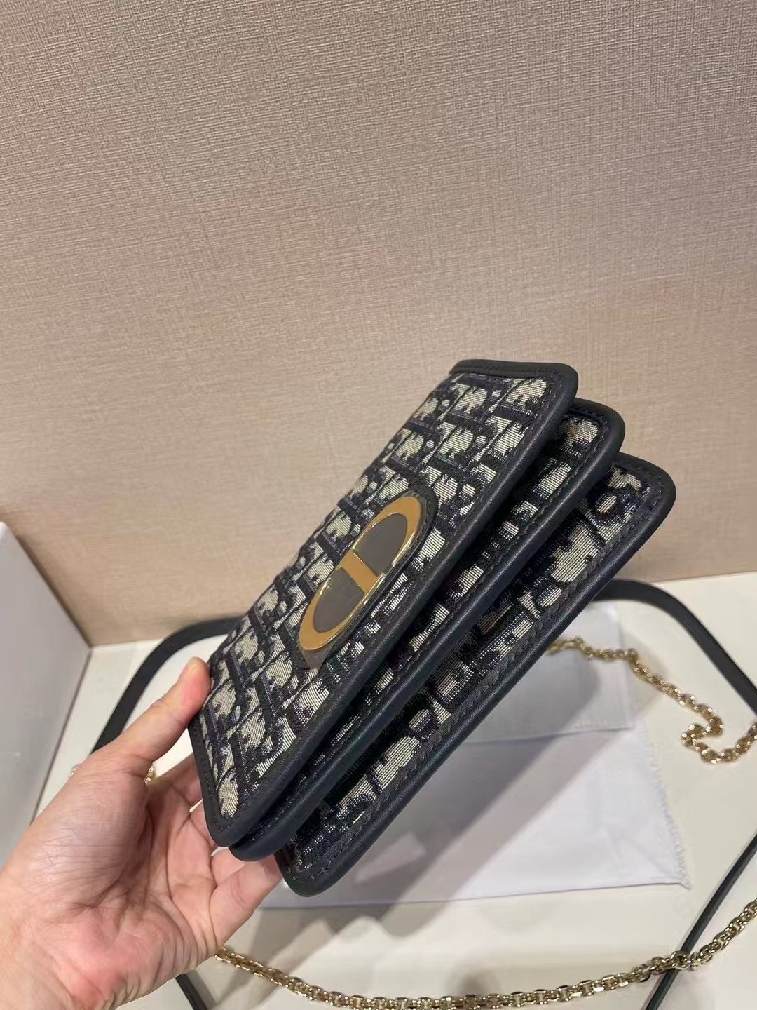 This is the DIOR 30 Montaigne Avenue bag, featuring the iconic Oblique monogram print (on fabric) with a contrast black trim. It has the signature gold-tone “CD” clasp, plus a detachable leather-threaded chain strap—supporting shoulder or crossbody carry. A sleek, iconic luxury piece that blends classic branding with versatile, modern styling.