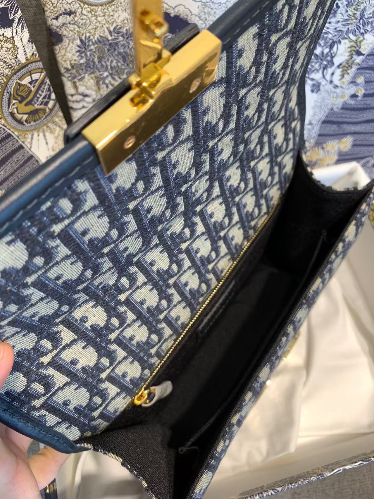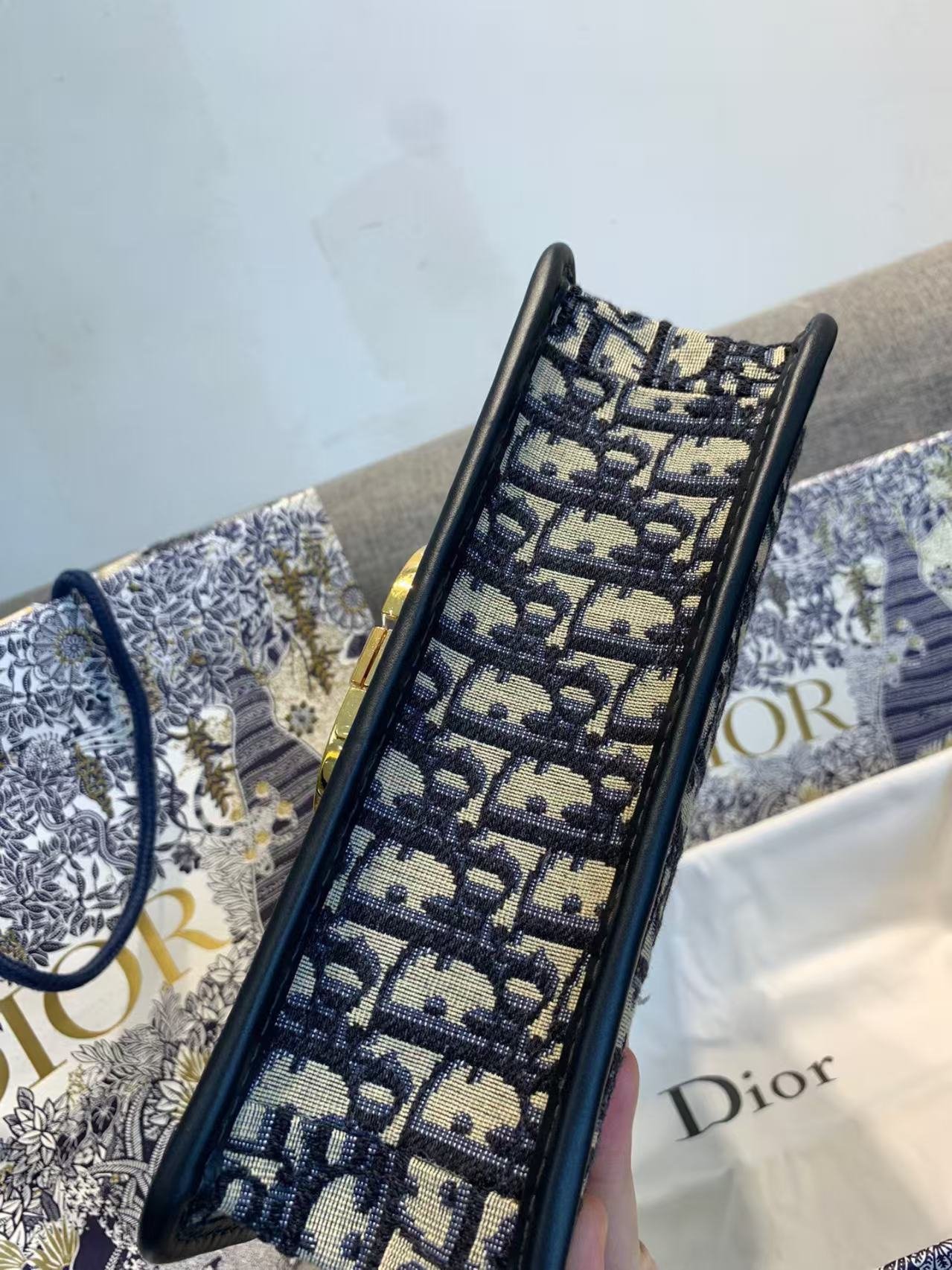 This is the DIOR 30 Montaigne box bag, crafted from fabric featuring the all-over Oblique monogram embroidery (in black and cream) with black leather trim. It highlights a prominent gold-tone “CD” clasp, plus a metal chain strap—supporting crossbody or shoulder carry. A sleek, structured luxury piece that blends classic branding with a modern, boxy silhouette, ideal for elevating daily or semi-formal looks.