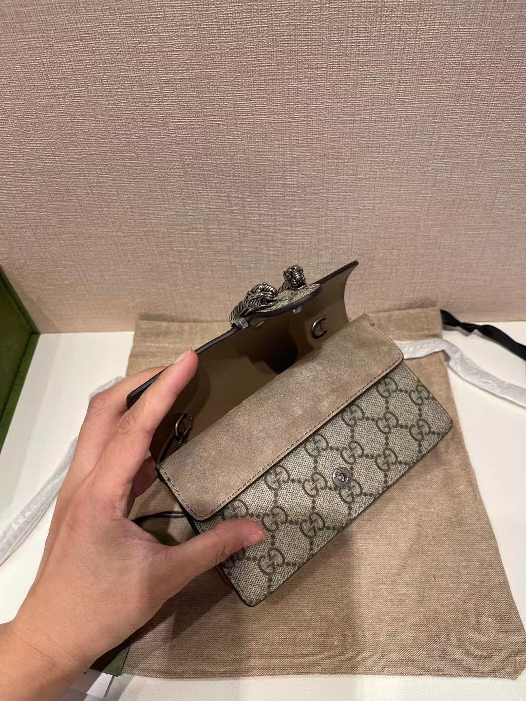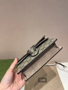 This is a GUCCI Neo Vintage bag, featuring an all-over GG Monogram print on canvas with leather accents, a gold-embossed logo, and a tiger-head detail. It comes with a striped strap for versatile crossbody or waist bag styling, embodying the brand’s retro-chic luxury and playful, bold design.