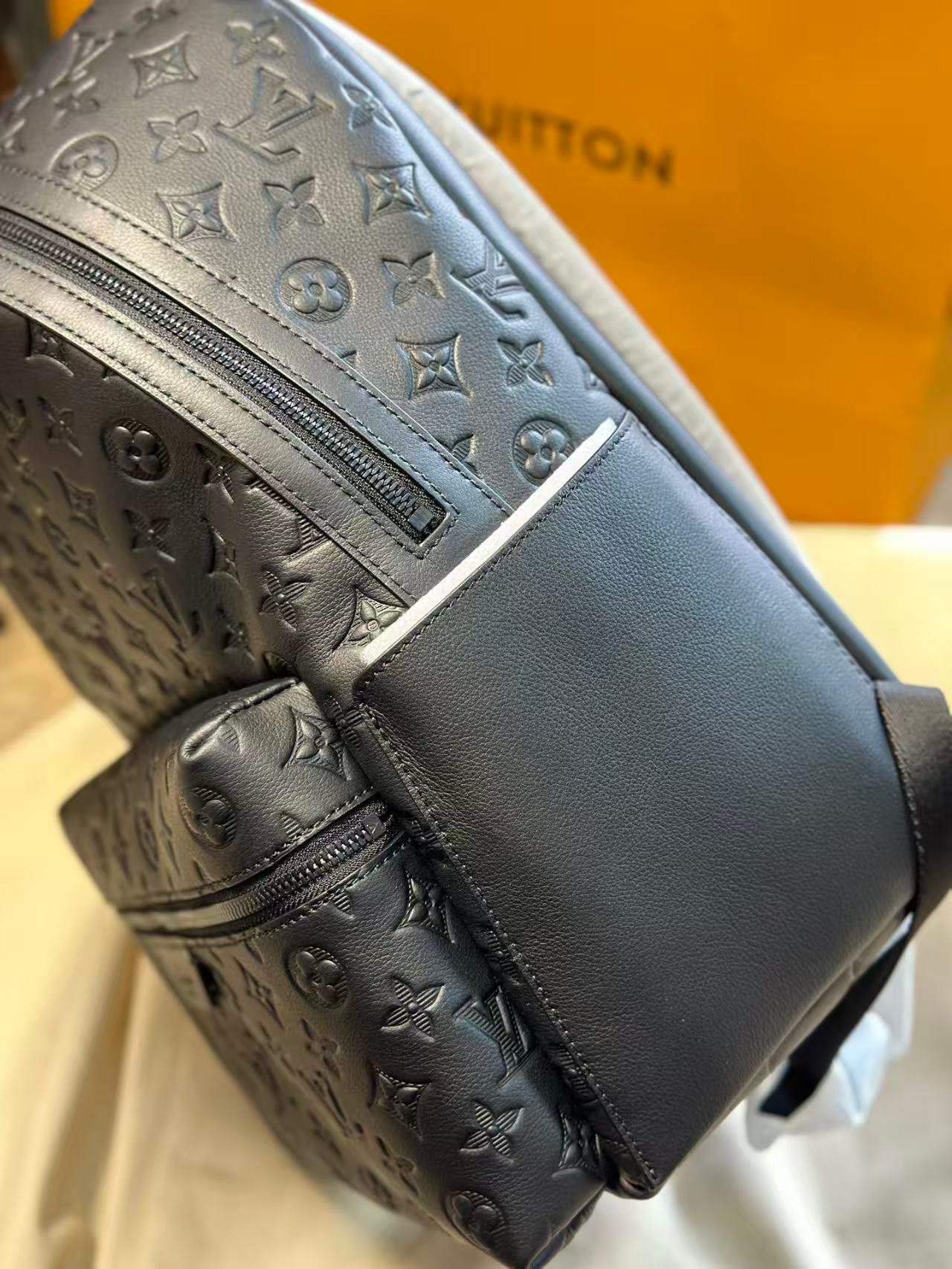 This is a Louis Vuitton Discovery backpack, crafted from calfskin with an all-over embossed Monogram print, featuring a zipper closure and a functional design ideal for everyday use. It embodies the brand’s luxury craftsmanship and versatile styling for a modern, on-the-go lifestyle.