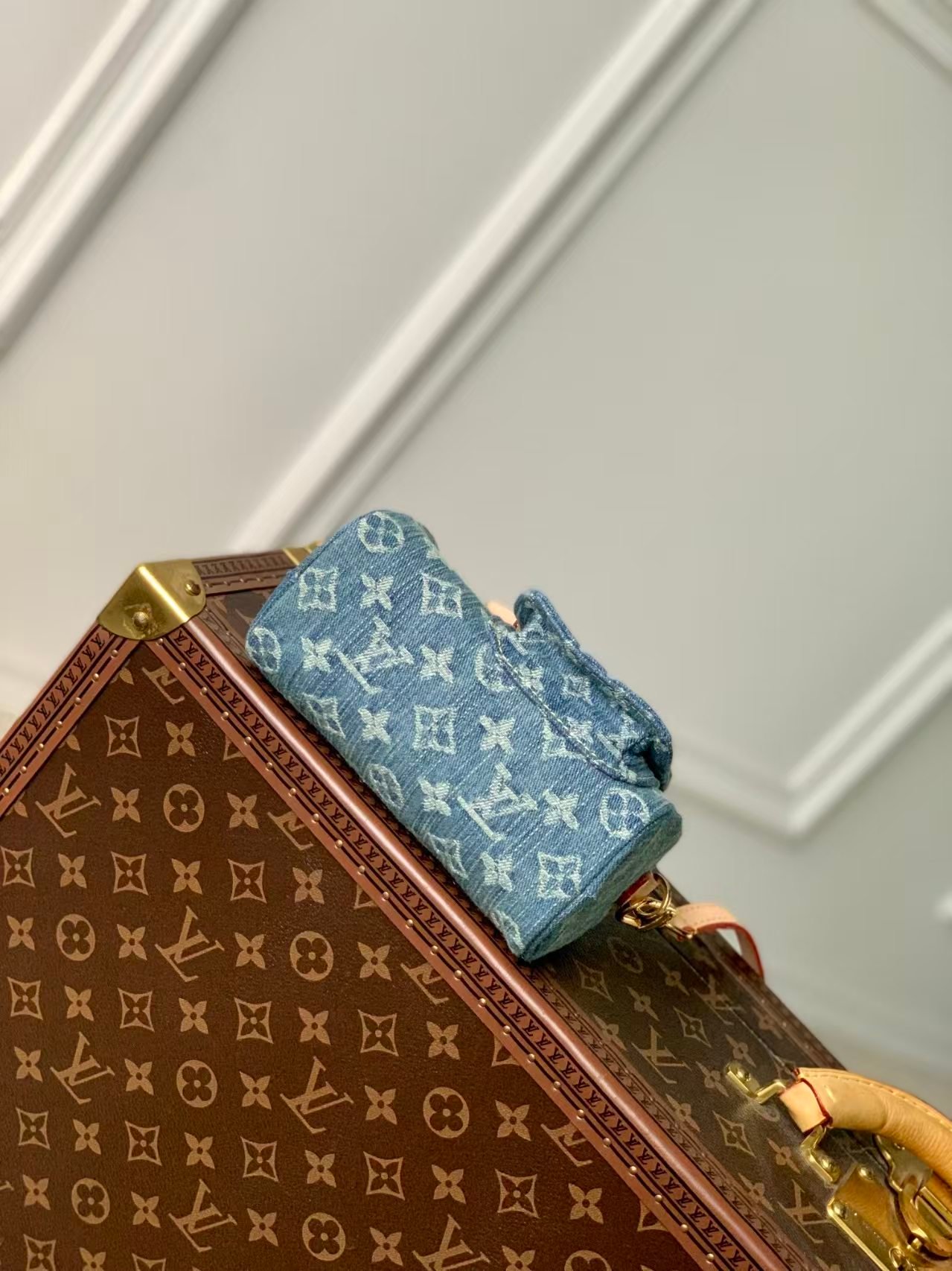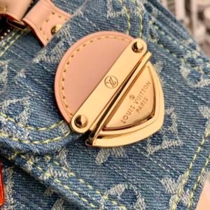 This is a Louis Vuitton Nano Speedy bag in denim, featuring a detachable strap, a zipper closure, and an extra-mini silhouette. It offers versatile styling as a handbag, shoulder, or crossbody bag, embodying the brand’s luxury craftsmanship with a trendy, casual denim twist.
