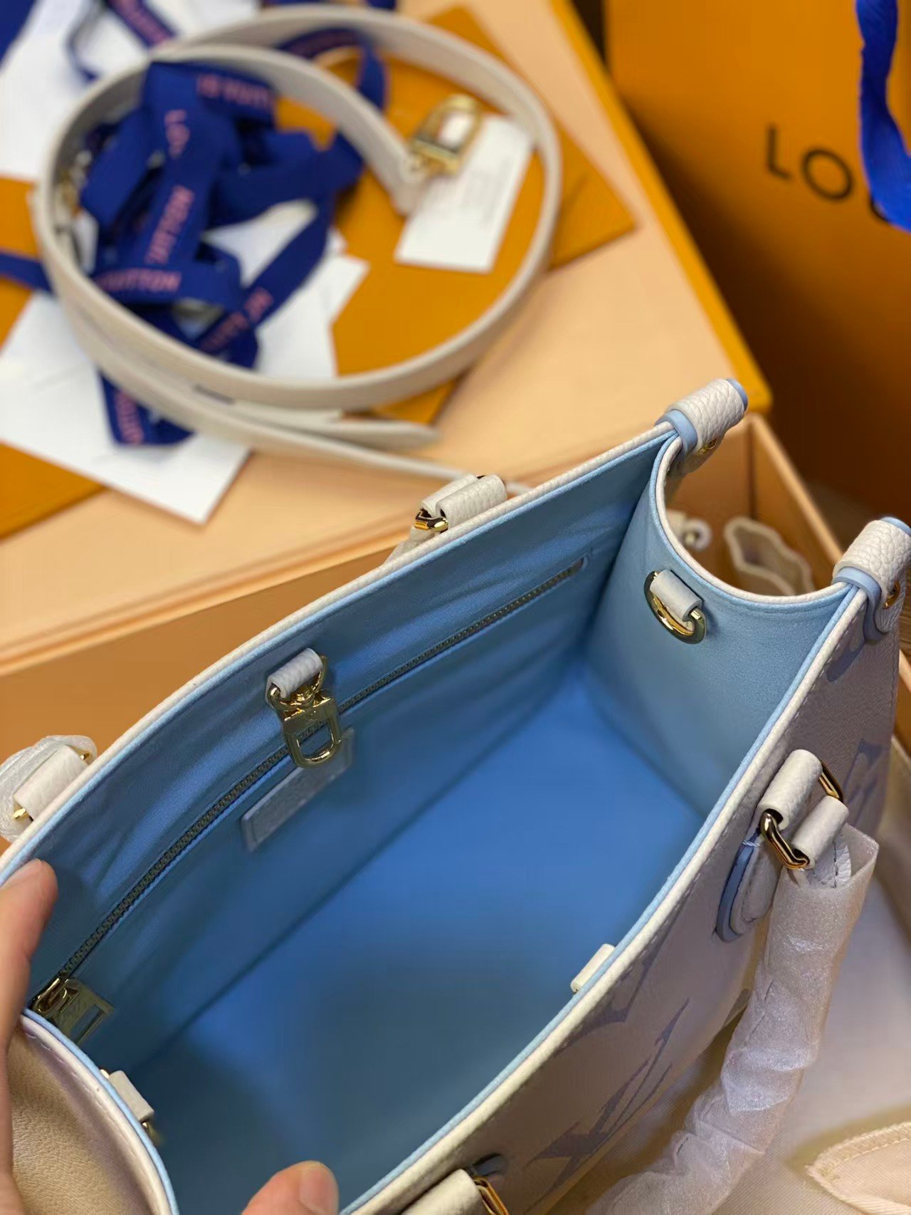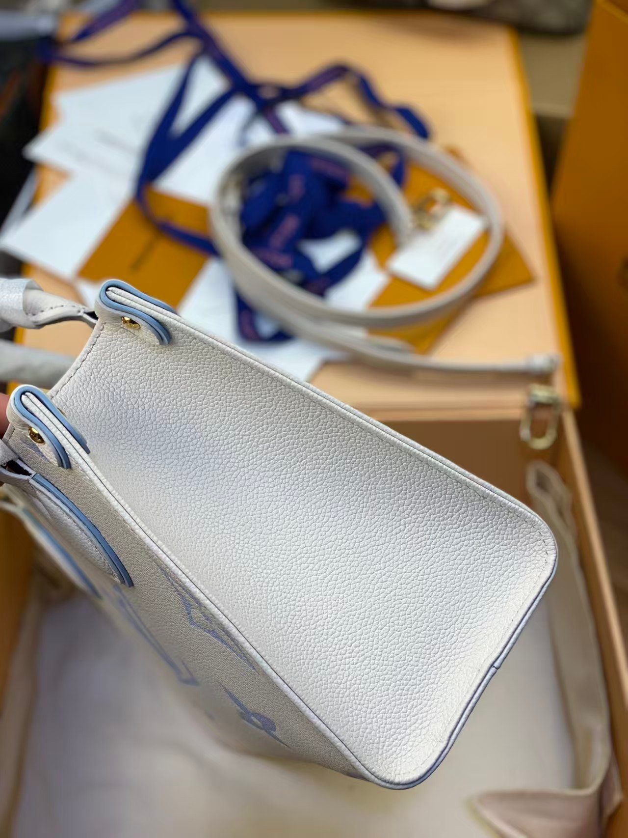 This is a Louis Vuitton Onthego PM bag, crafted from leather with embossed patterns, featuring a detachable and adjustable strap, a hook closure, and versatile styling as a handbag or shoulder tote. It embodies the brand’s luxury craftsmanship and functional design, ideal for both casual and sophisticated looks.