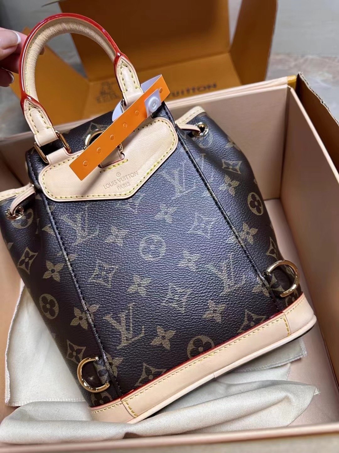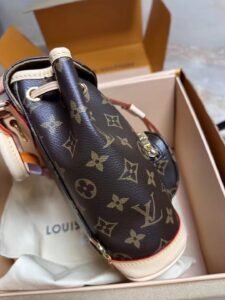 This is a Louis Vuitton Montsouris mini backpack in the classic Monogram canvas, featuring a drawstring closure, the iconic LV logo detailing, and a compact silhouette. Crafted from coated canvas, it embodies the brand’s timeless design and functional versatility, ideal for stylish, on-the-go styling.